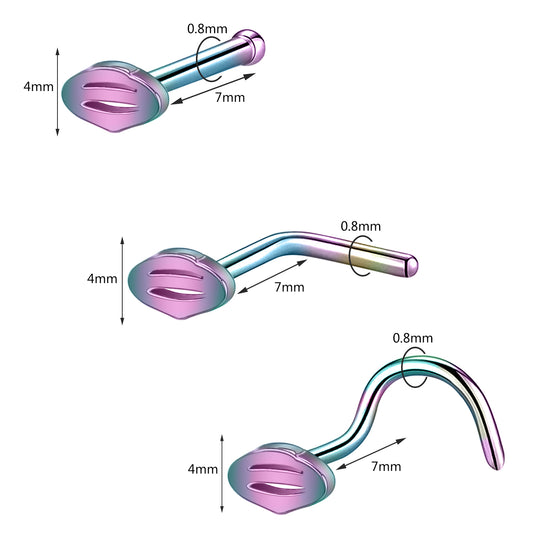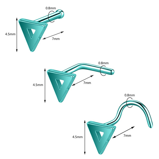 20G Blue Green Triangle Nose Studs Piercing Nose Bone Shape L Shape Crokscrew Nose Rings Stainless Steel Nostril Piercing