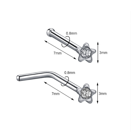 20g Star Flower Nose Rings Piercing Nose Bone L Shape Corkscrew Nose Studs