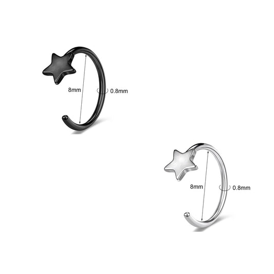Regular price $8.59Regular priceUnit price / per$12.99Sale price $8.5920G Black Silver Star Nose Ring C Shaped Nose Stud Stainless Steel Nose Rings Piercing