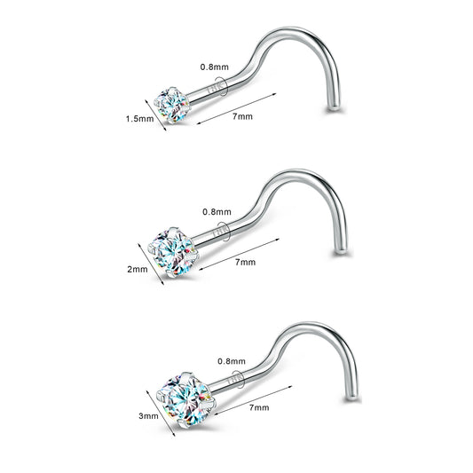 20G AB White Zircon Nose Studs Piercing Crokscrew Nose Rings 18K Plated Nostril Piercing