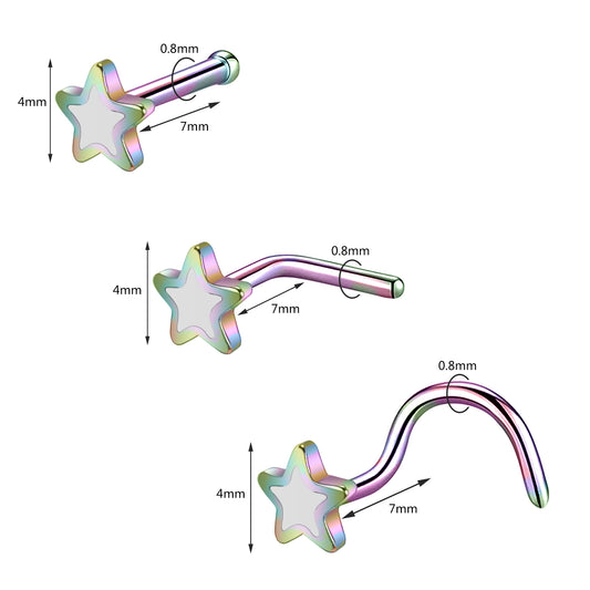20g Rainbow Star Nose Rings Piercing Nose Bone L Shape Curve Nose Studs