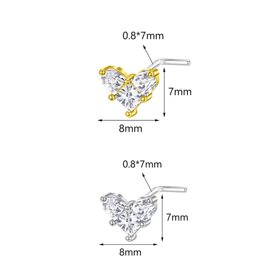 20G Heart Nose Studs Piercing L Shape Nose Rings Sparking Zirocn Nostril Piercing