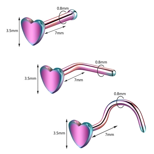 20g Rainbow Heart Nose Rings Piercing Nose Bone L Shape Curve Nose Studs