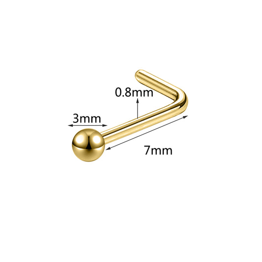 5Pcs/Set 20g Round Ball Nose Ring Piercing L Shape Nose Stud