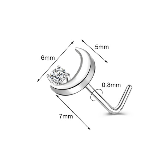 20g Moon Nose Stud Piercing L Shaped Nostril Piercing Crystal Nose Ring