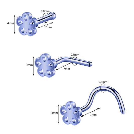 Regular price $8.69Regular priceUnit price / per$12.99Sale price $8.6920G Violet Blue Flower Nose Studs Piercing Nose Bone Shape L Shape Crokscrew Nose Rings Stainless Steel Nostril Piercing