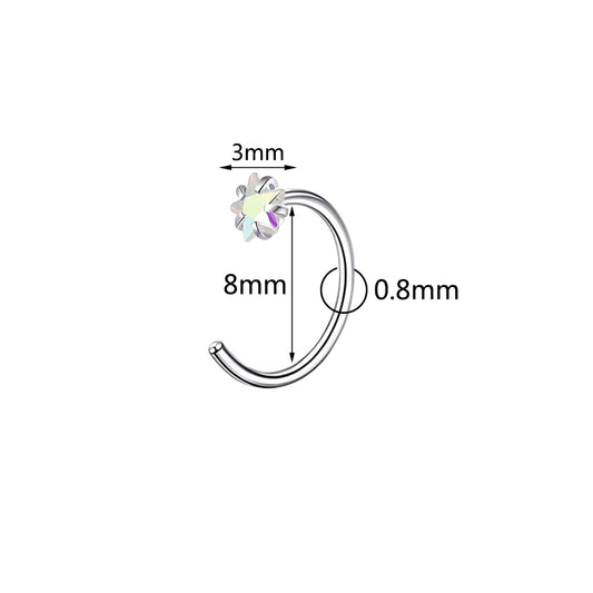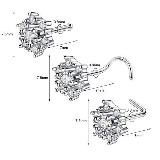 20g Crystal Flower Nose Rings Piercing Nose Bone L Shape Corkscrew Nose Studs
