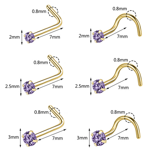 20g Violet Blue Zircon Nose Studs Piericng Gold Plated L Shape Corkscrew Nose Rings