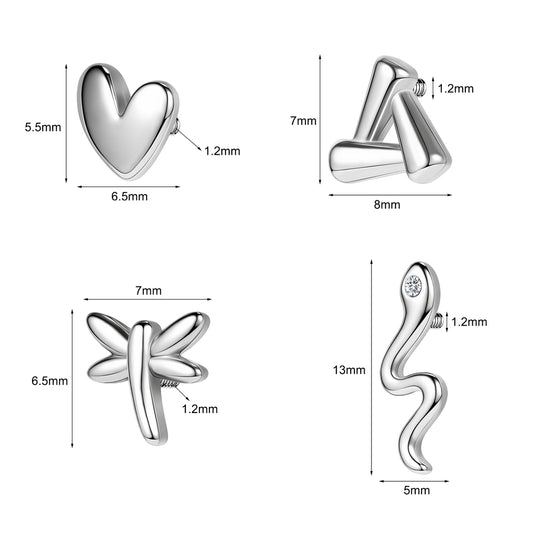 4pcs Snake Dermal Anchor Tops Surgical Steel Internally Threaded Skin Diver Piercings