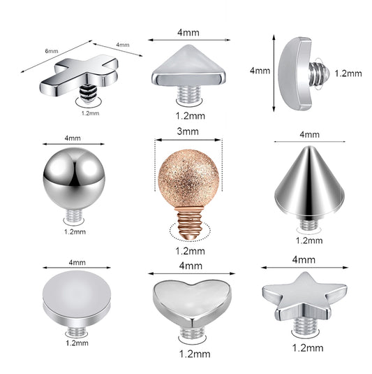 4pcs Cute Dermal Anchor Tops Surgical Steel Internally Threaded Skin Diver Piercings