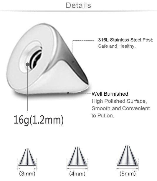 ZS 6pcs Piercing Barbell Parts 16G Replacement Steel Spike Top-Economic Set