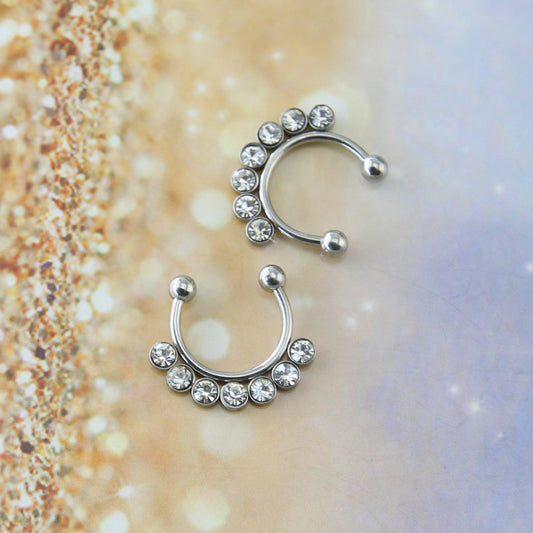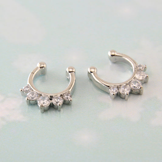16G Non Piercing Septum Ring White Zircon False Nose Piercing Jewelry