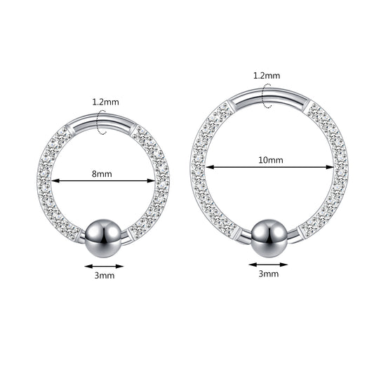 16G Round Zircon Clicker Septum Ring Stainless steel Helix Cartilage Piercing