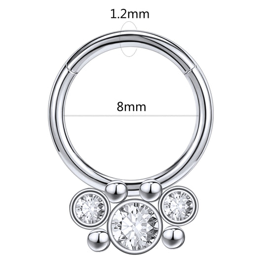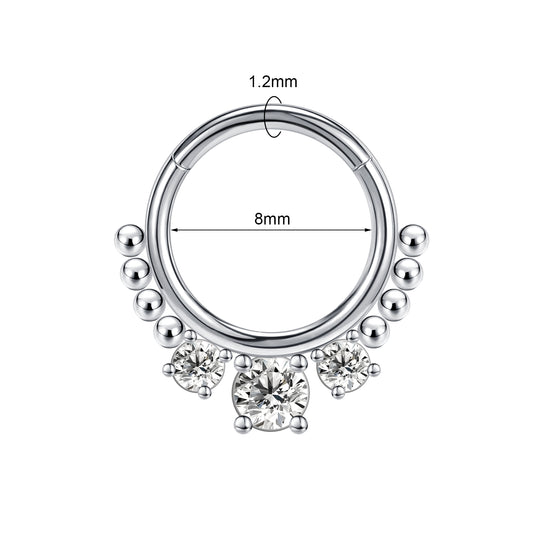 16G White Zircon Clicker Septum Ring Stainless Steel Helix Cartilage Piercing