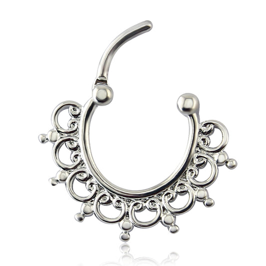 16G Silver Septum Clicker Ripple Helix Tragus Conch Earrings