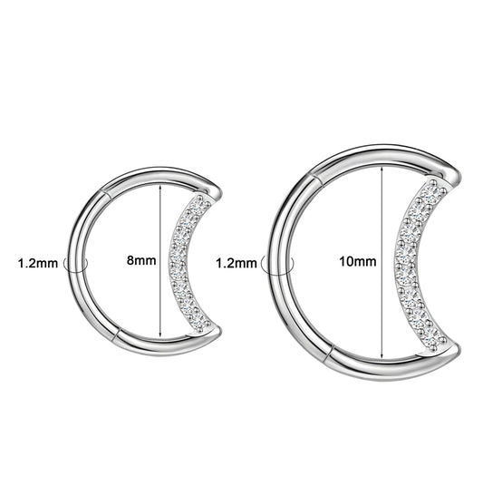 16G G23 Titanium Moon Septum Clicker Ring Crystal Conch Helix Cartilage Piercing