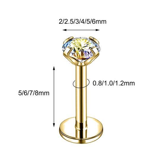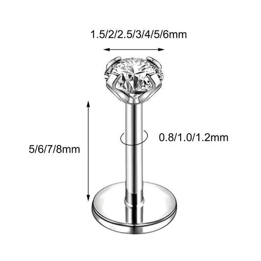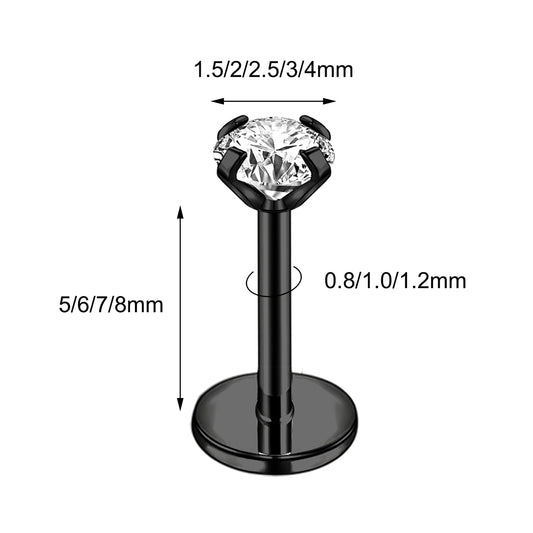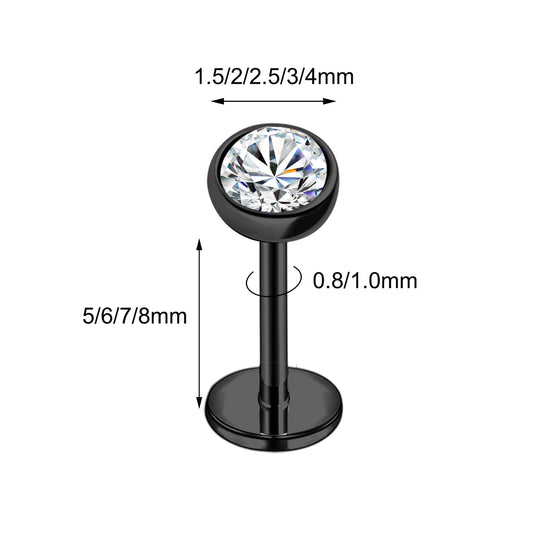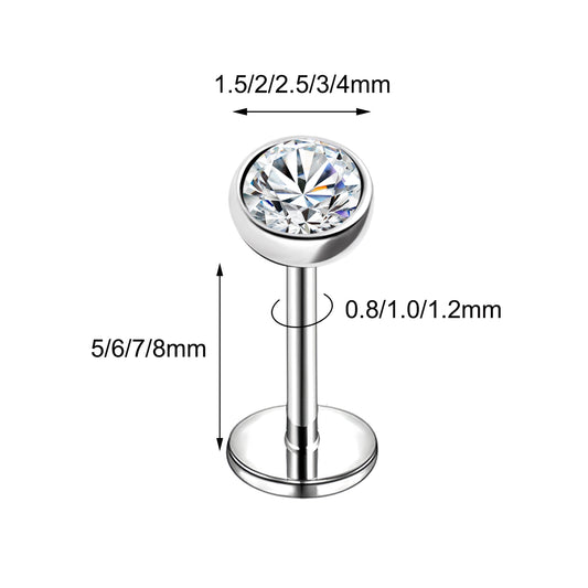 16g/18g/20g Flat Back Earring Shiny Zircon Cartilage Earring Threadless Conch Helix Piercing