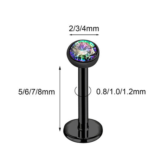 16g/18g Flat Back Earring Rainbow Crystal Cartilage Earring Internal Thread Conch Helix Piercing