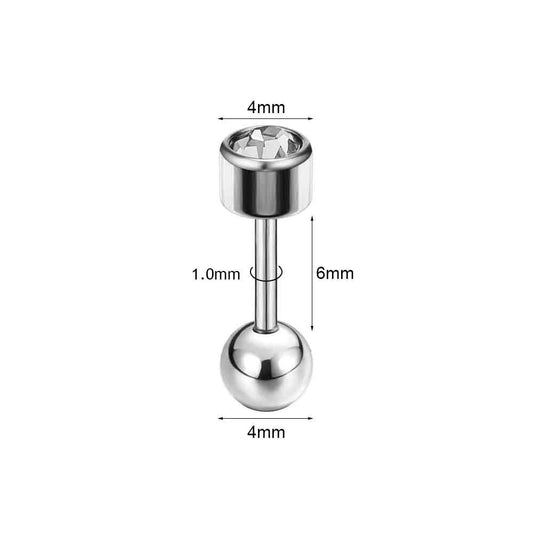 18G Cylinder Crystal Stud Earring Ball Ear Stud Jewelry