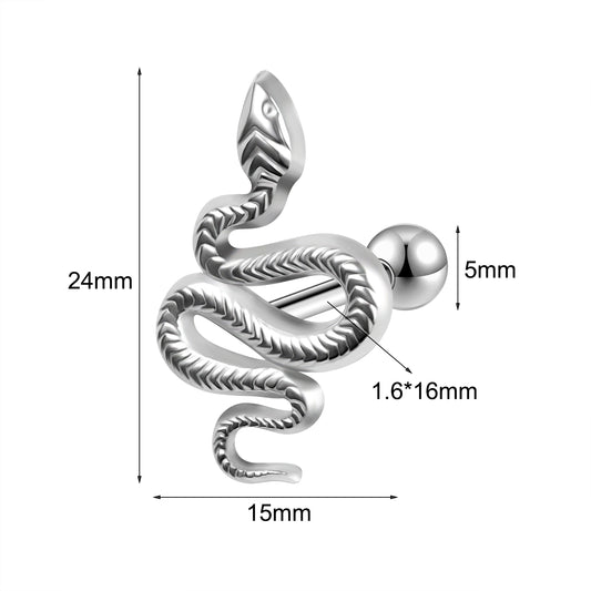 14g Snake Tongue Ring Threaded Tongue Piercing Barbell Jewelry