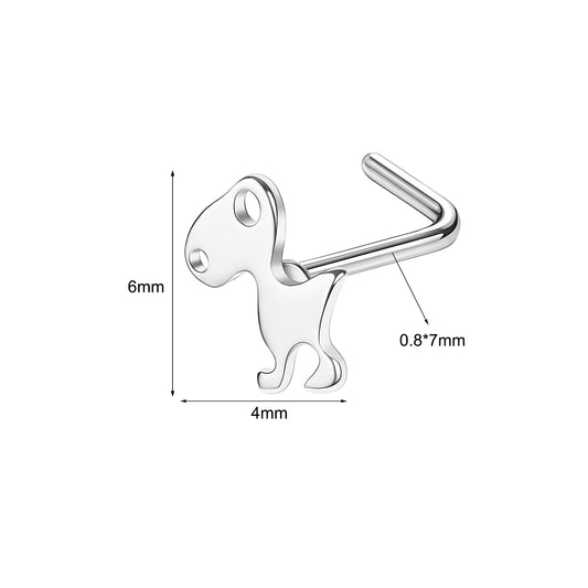 20G Dinosaur Nose Studs Piercing L Shape Nose Rings Cartoon Nostril Piercing
