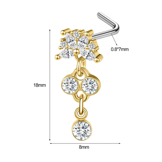20G Moon Dangle Nose Studs Piercing L Shape Nose Rings Cubic Zirocn Nostril Piercing