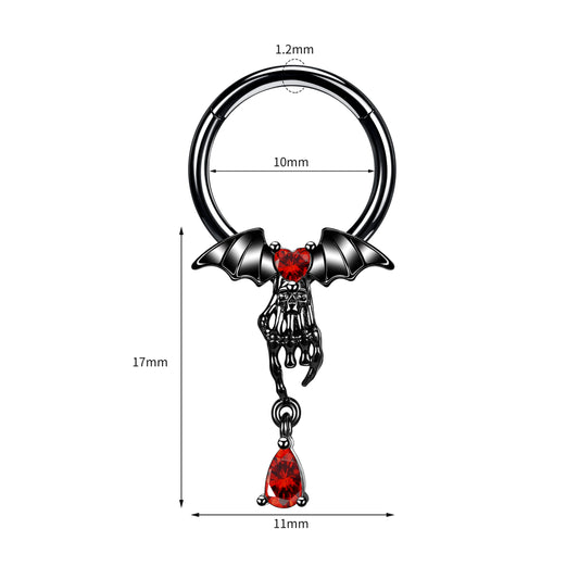 16G Black Bat Nose Rings Red Zirconal Septum Rings Stainless Steel Ear Cartilage Helix Tragus Conch Piercing