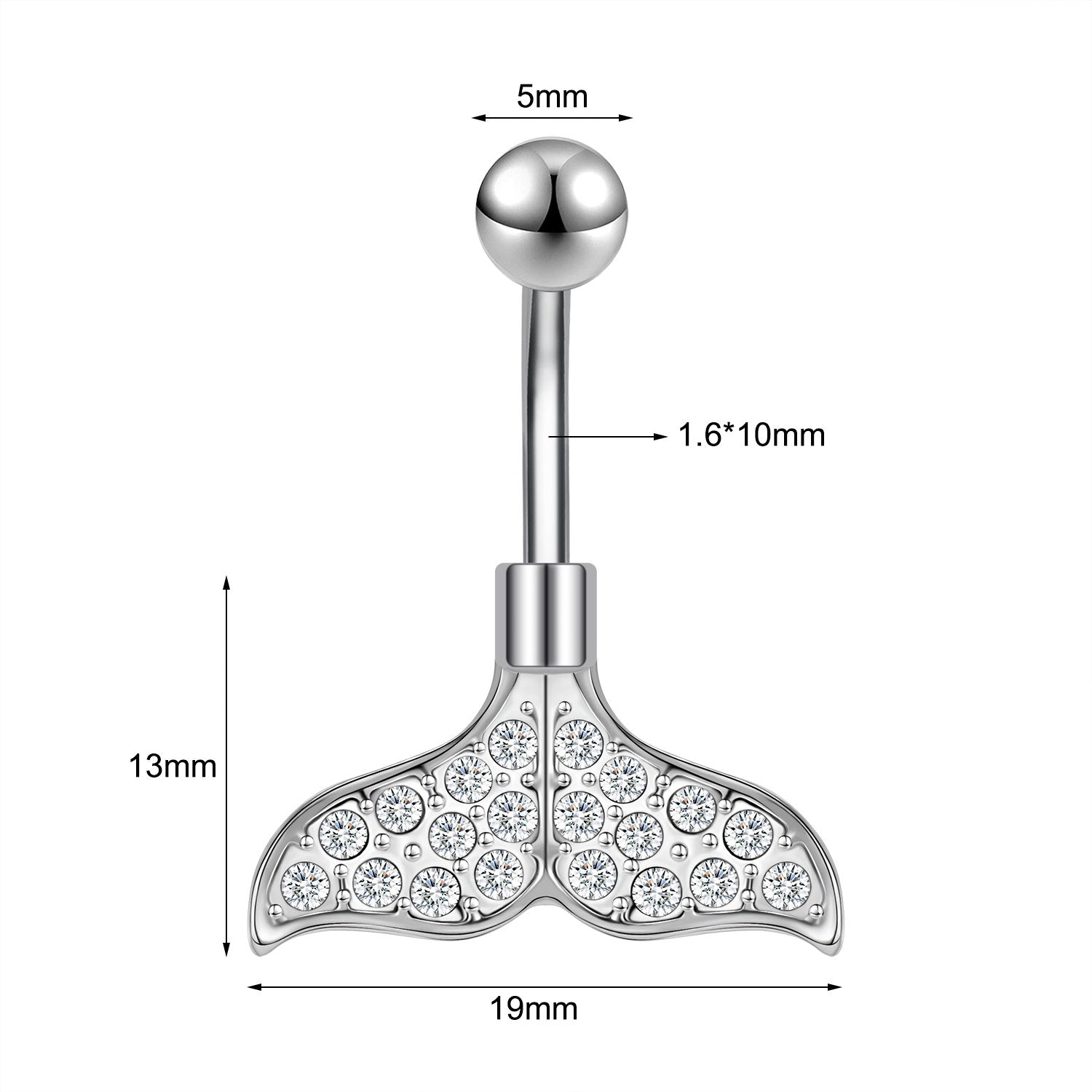 - Belly Bar thickness: 14G (1.6mm), Bar length: 10mm.