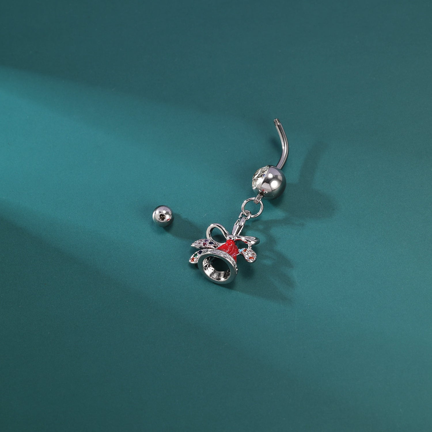 14G Small Bell Belly Navel Rings Bling Crystal Belly Button Rings Christmas Jewelry