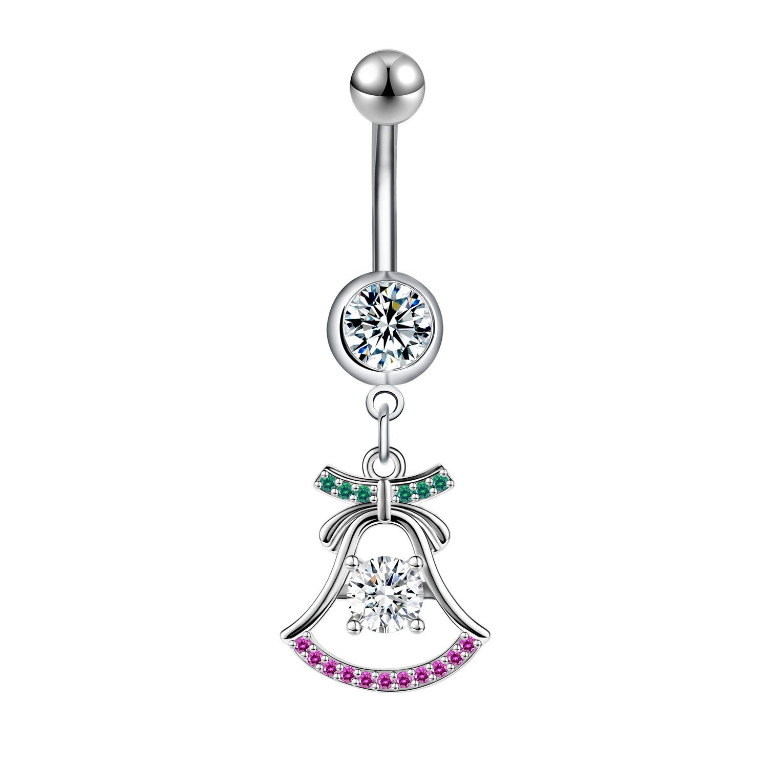 14G Small Bell Belly Navel Rings Clear Zircon Belly Button Rings Christmas Jewelry