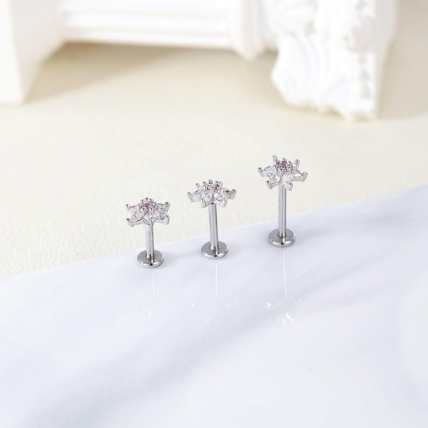 16g Flower Labret Ring Flat Back Stud Earring Push-in Conch Helix Lip Piercing