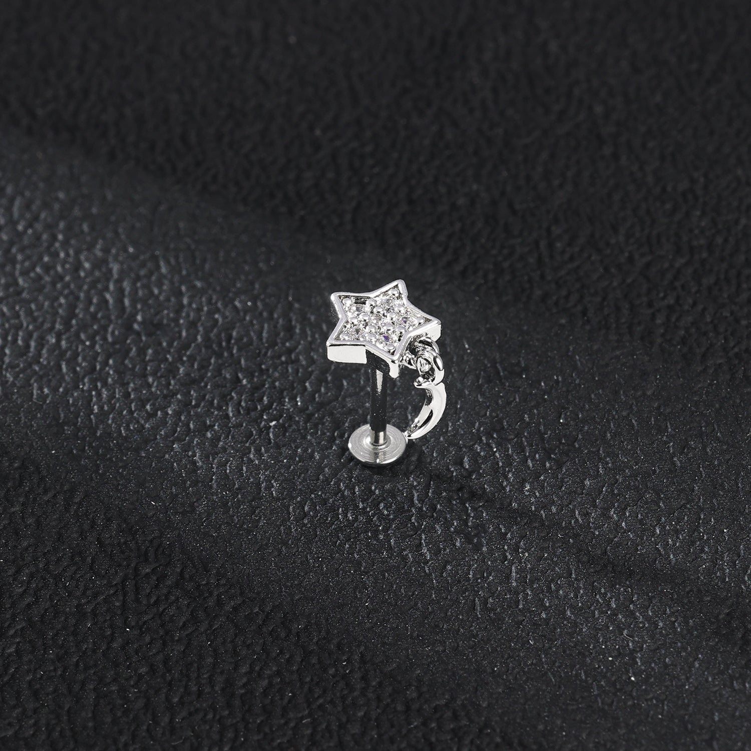 16g Moon Dangle Labret Ring Clear Zircon Stud Earring Conch Helix Lip Piercing