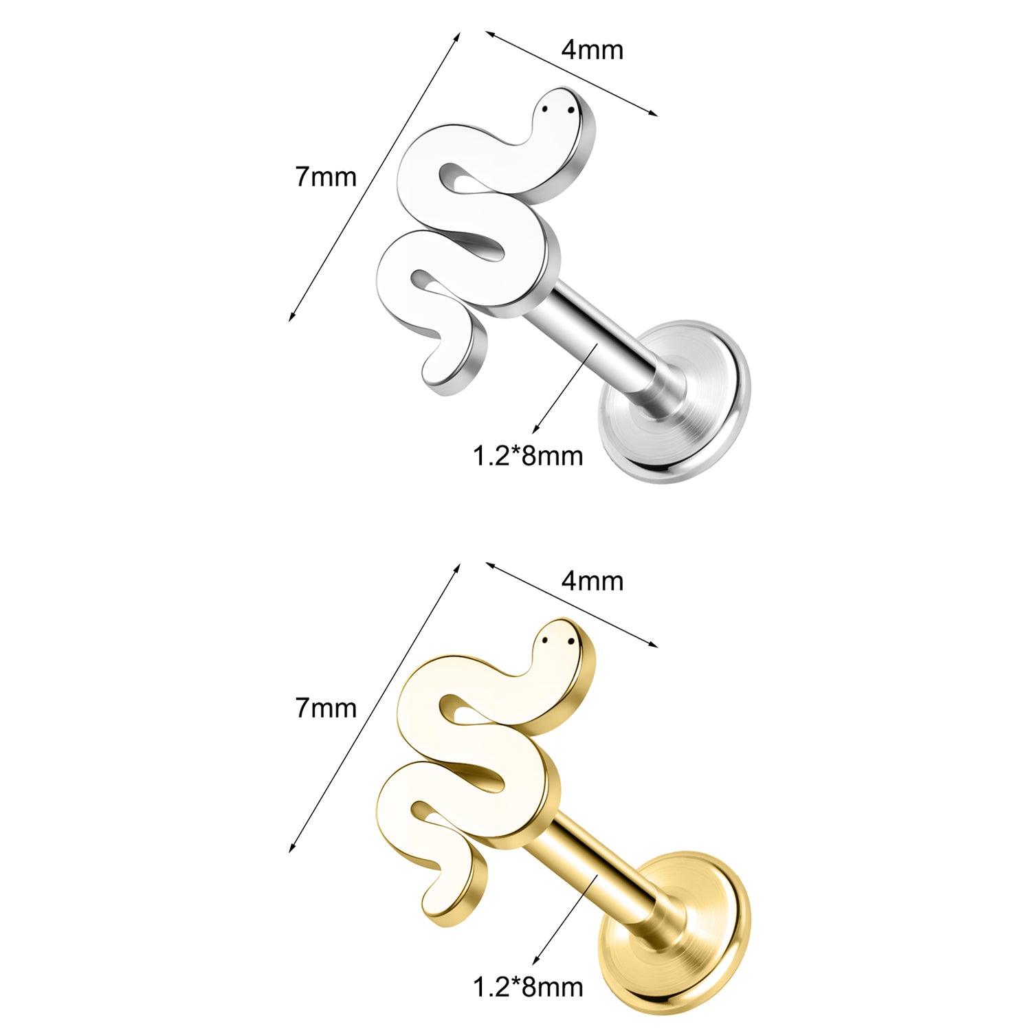 16g Snake Labret Ring Flat Back Stud Earring Conch Helix Lip Piercing