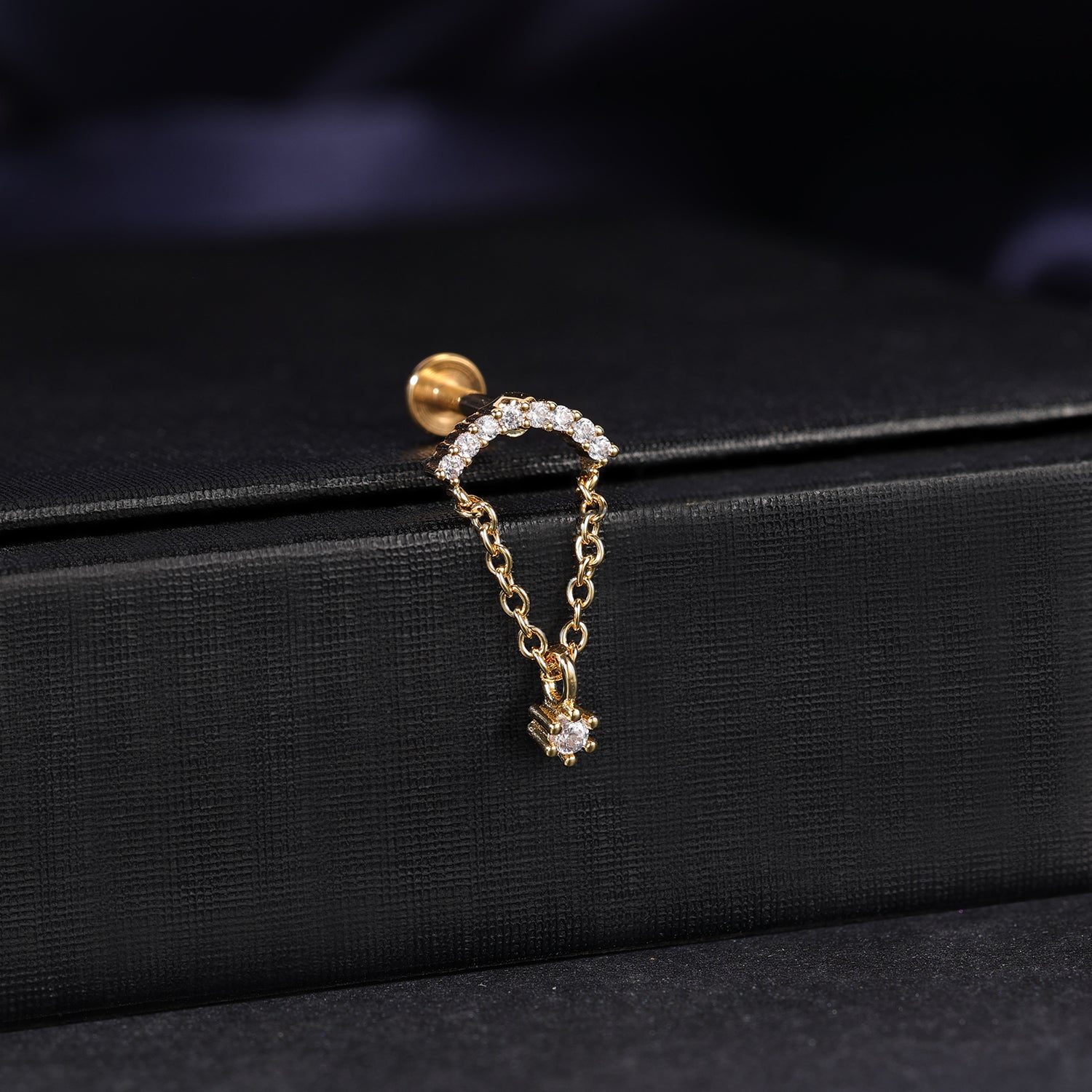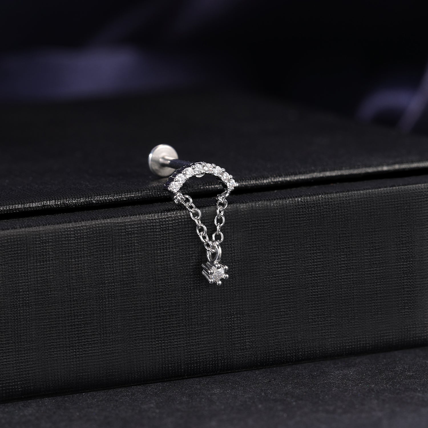 16g Zircon Dangle Labret Ring Flat Back Stud Earring Conch Helix Lip Piercing