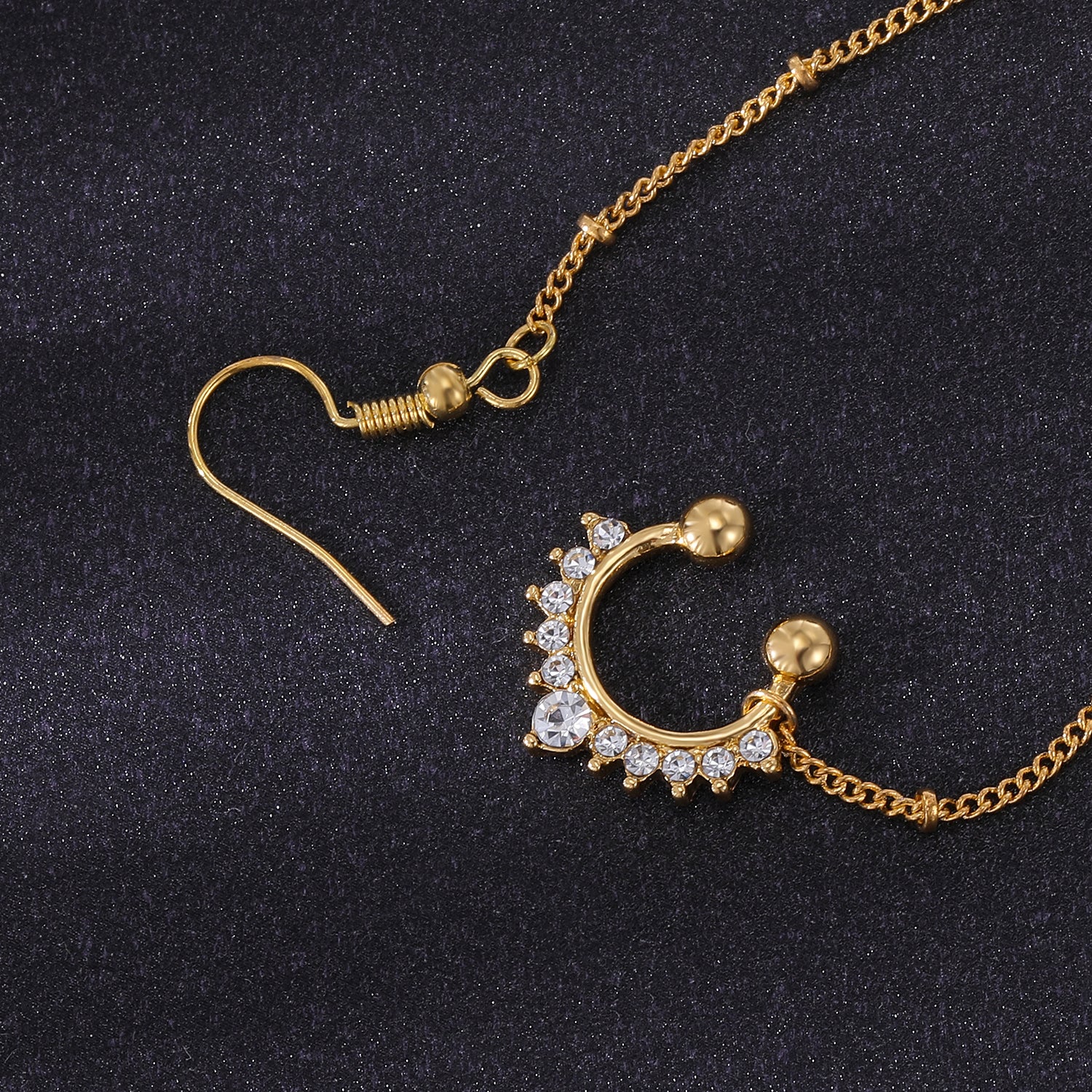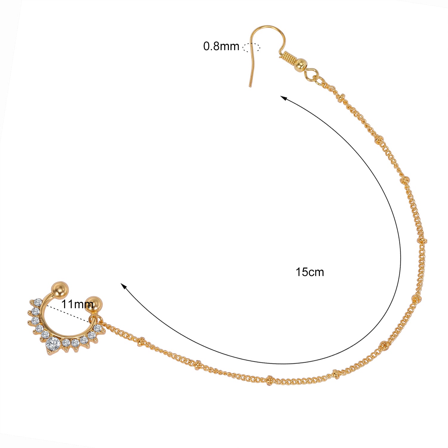 20G Zirconia Inlay Fake Nose Ring Alloy Elegant Nose Chain Earring