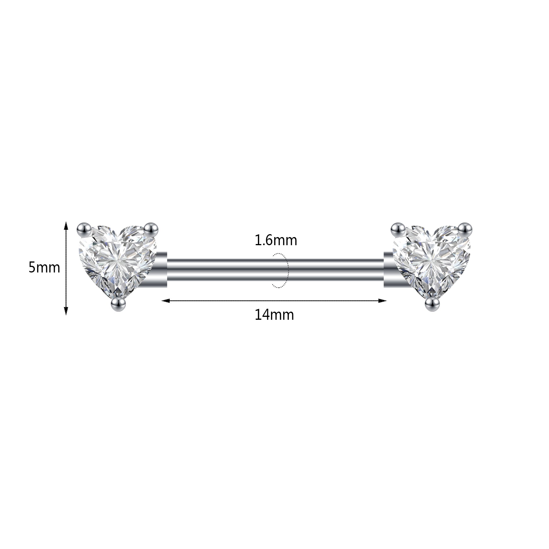 2pcs 14G Heart Crystal Nipple Barbell Ring Black Claw Nipple Piercing
