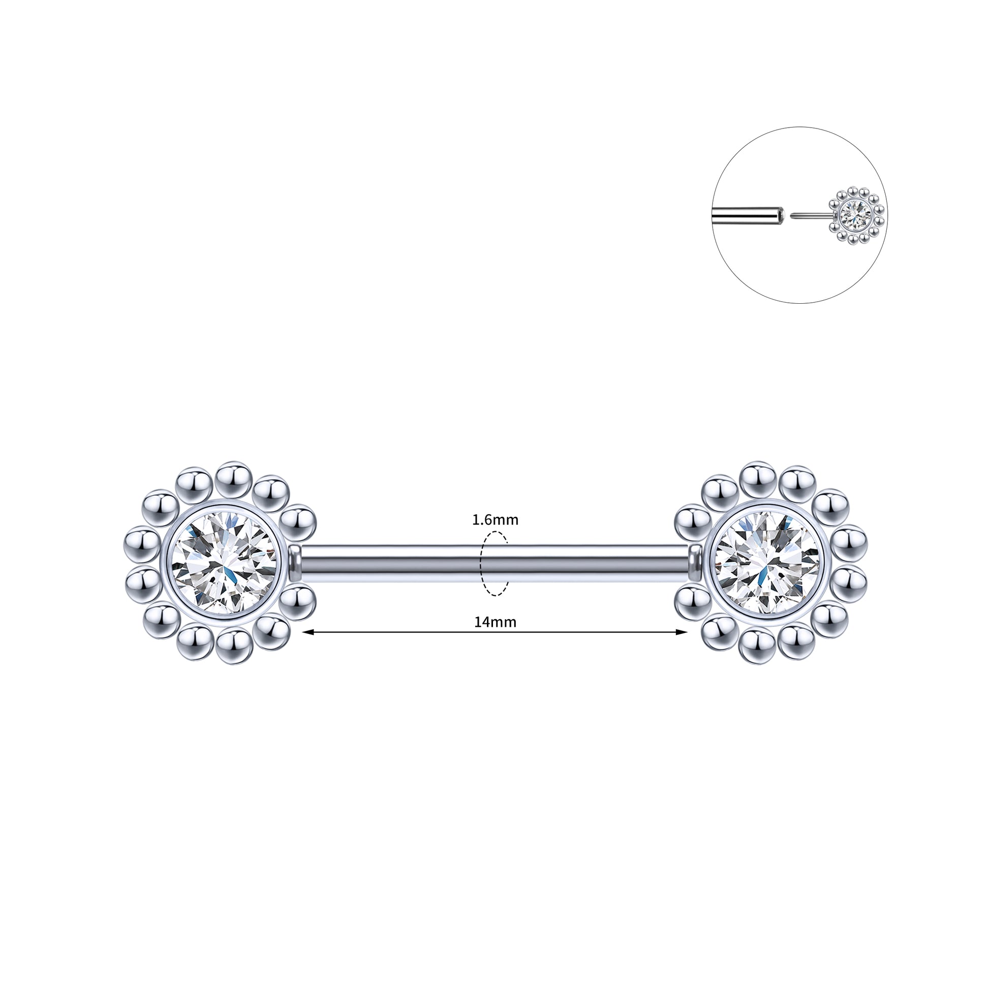 2pcs 14G Plug-in Nipple Ring Crystal Ball Nipple Piercings