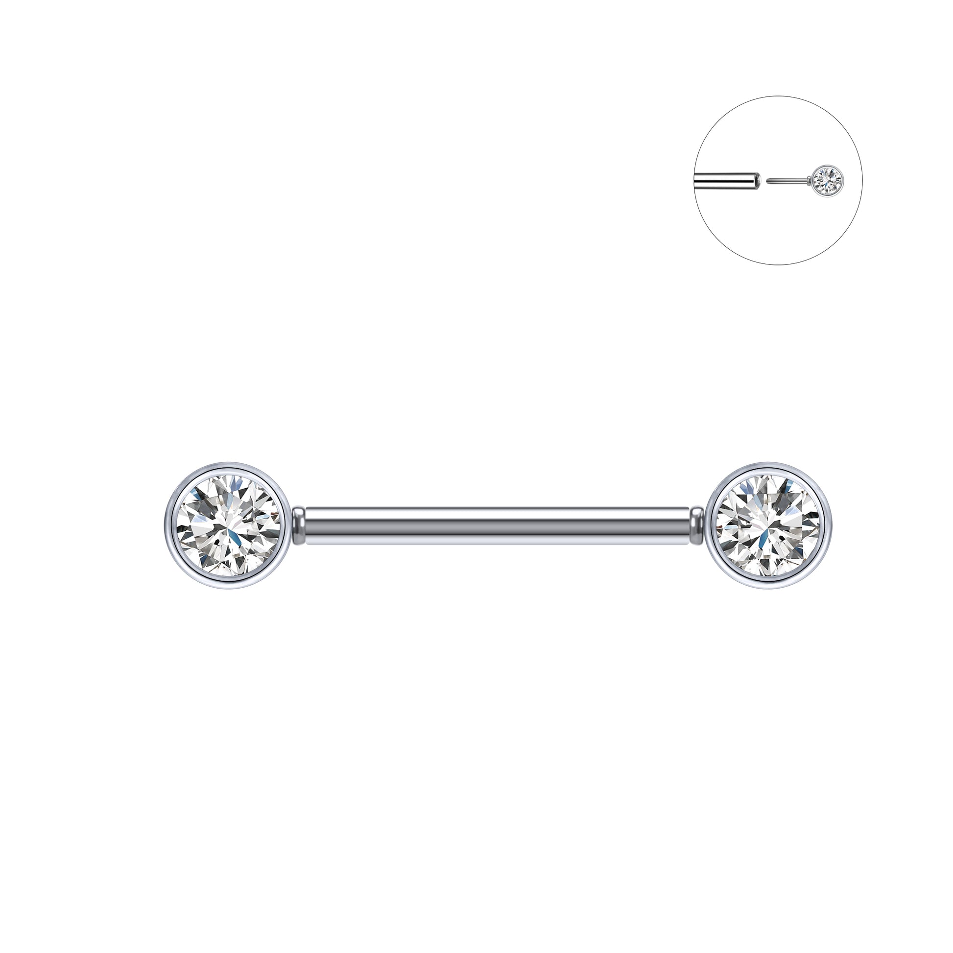 2pcs 14G Plug-in Nipple Ring White Crystal Nipple Piercings